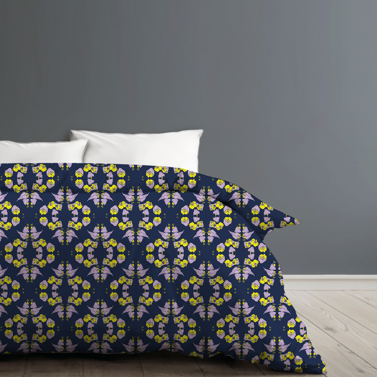 A favourite of Nanjala Design’s extensive catalogue of surface pattern prints, this sophisticated hand-drawn purple and neon yellow pattern print of the alstroemeria flower is a gem of a find for botanical print lovers.