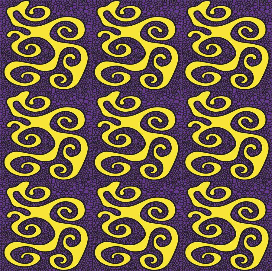 “Queen Bee” is a luxurious pattern exuding regality and sophistication with a central flowy yellow form against a royal purple backdrop. The design symbolizes royalty like a queen bee reigning over her hive, with intricate details and a sense of opulence. This fabric transforms emanates royal vibes for a luxurious ambiance.